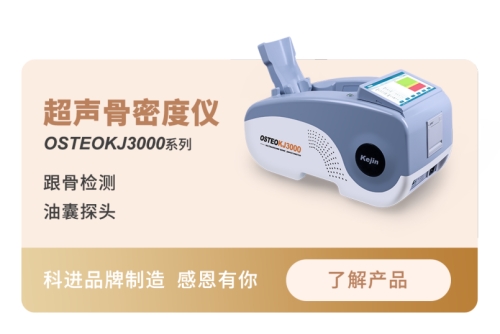 超聲骨密度儀OSTEOKJ3000系列產品,采用油囊探頭測量跟骨骨密度,數據準確,重復性好。